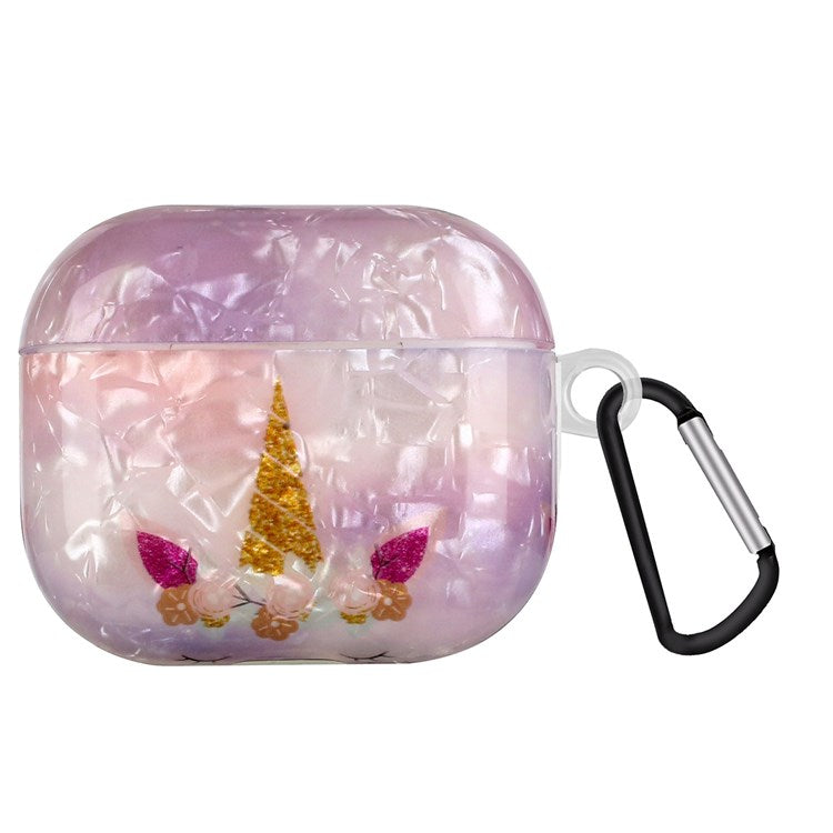 Anti-fall Earphone Case for Apple AirPods 3, Pattern Printed IMD Shell Grain TPU Cover Earbud Protector with Hook - Unicorn