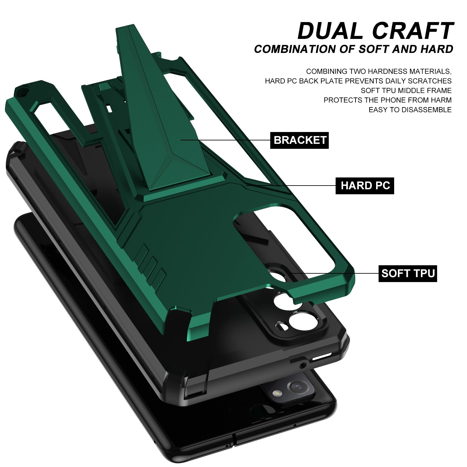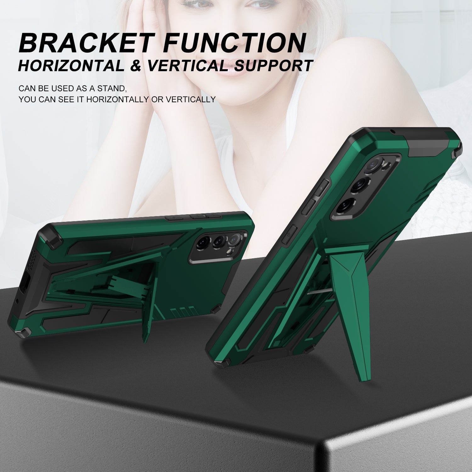 Anti-Fall V-Shaped Kickstand TPU + PC Hybrid Phone Cover Case with Built-in Metal Sheet for Samsung Galaxy S20 FE 2022/S20 FE 4G/S20 FE 5G/S20 Lite - Green