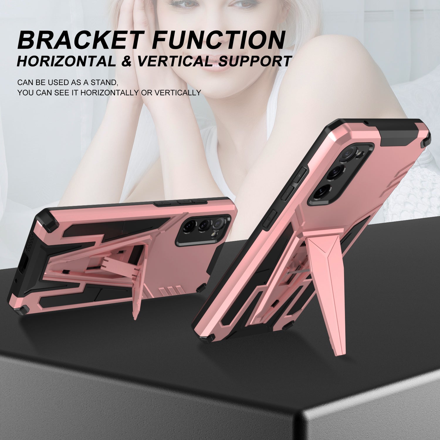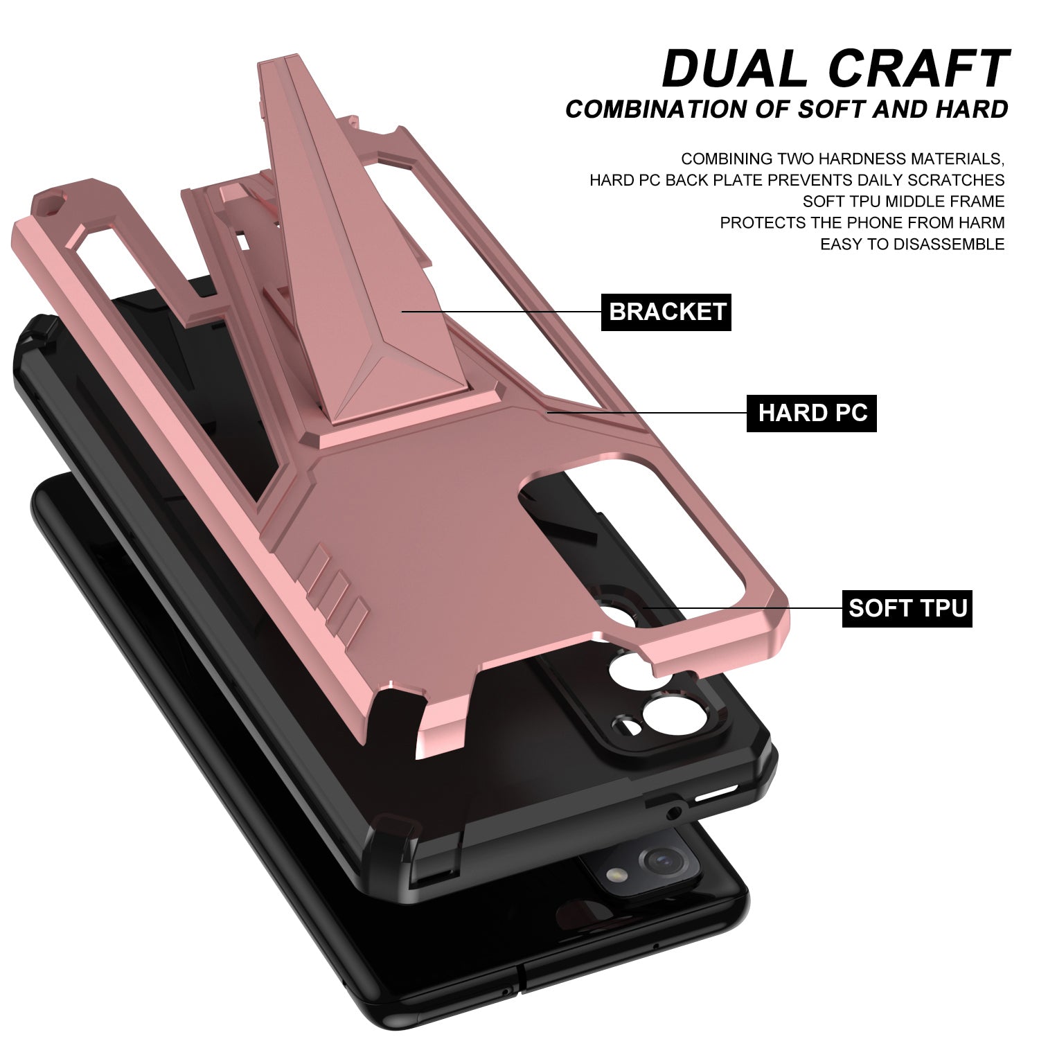Anti-Fall V-Shaped Kickstand TPU + PC Hybrid Phone Cover Case with Built-in Metal Sheet for Samsung Galaxy S20 FE 2022/S20 FE 4G/S20 FE 5G/S20 Lite - Rose Gold