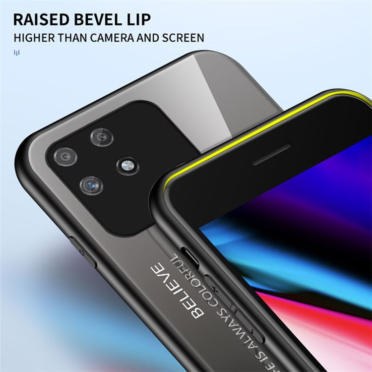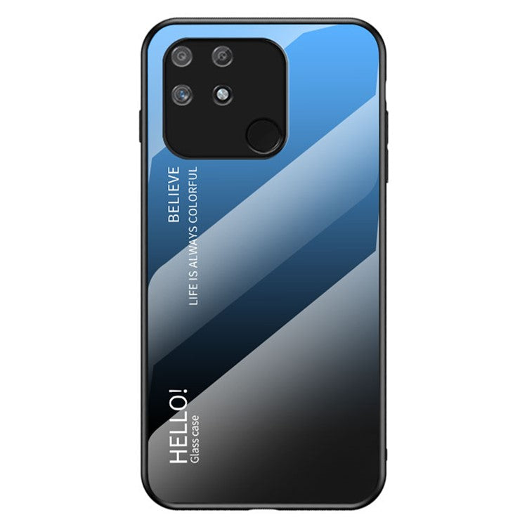 Anti-fingerprint Anti-scratch Gradient Color Tempered Glass Hybrid Cover Phone Case for Realme Narzo 50A - Gradient Blue Black