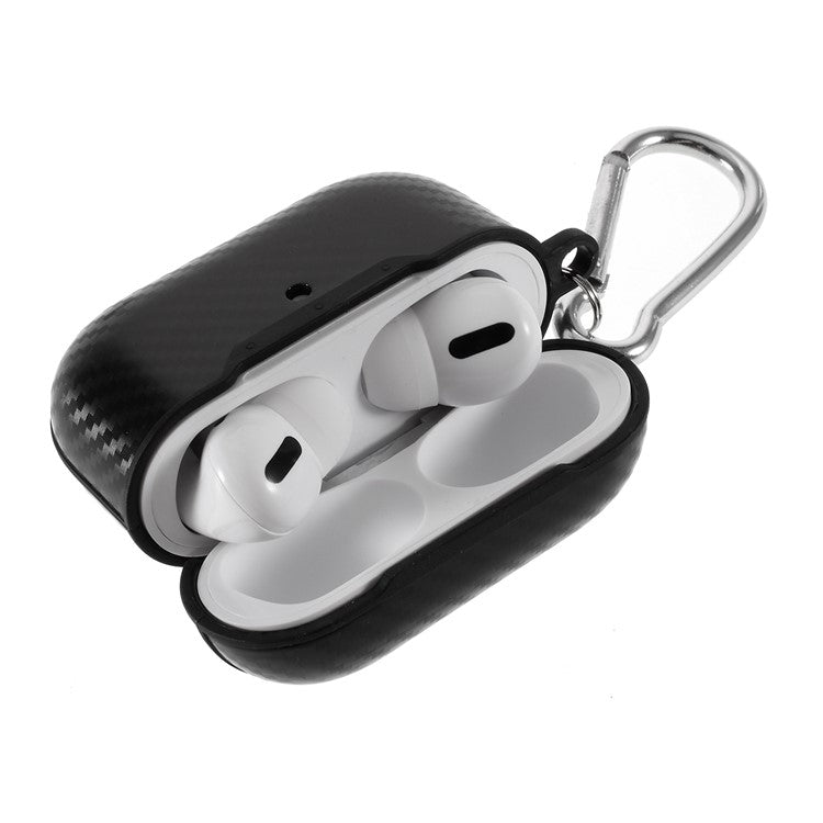 Anti-fingerprint Carbon Fiber Texture TPU Case with Hook for Apple AirPods Pro - Black