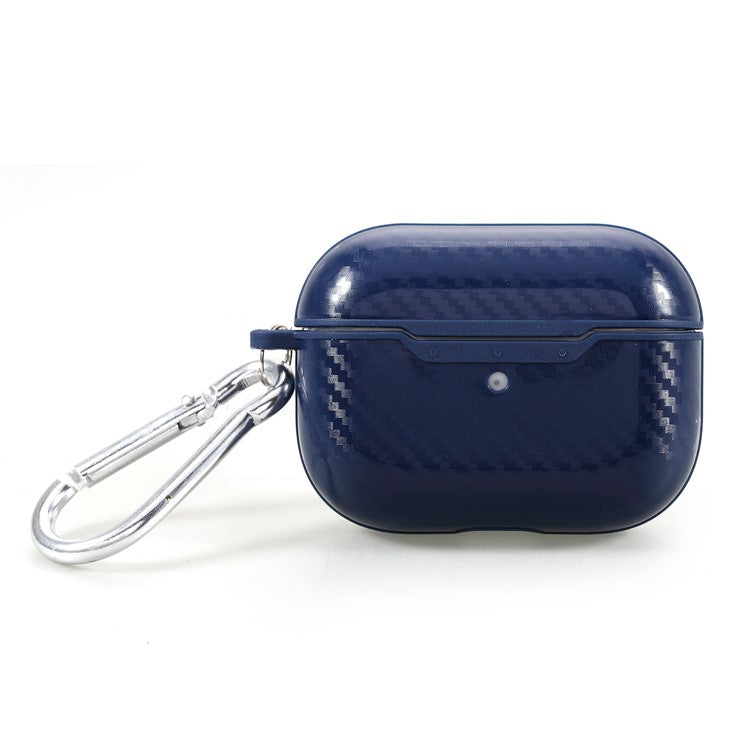 Anti-fingerprint Carbon Fiber Texture TPU Case with Hook for Apple AirPods Pro - Blue