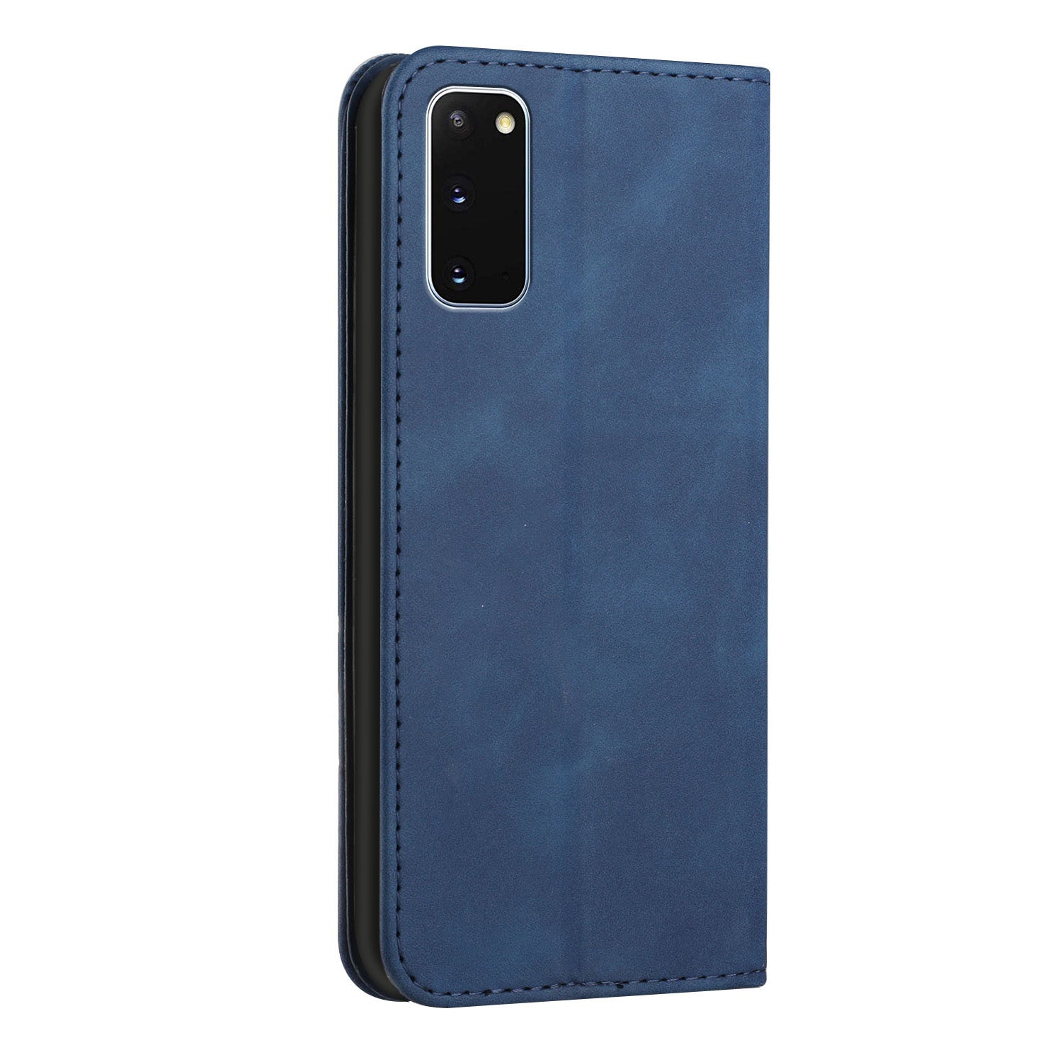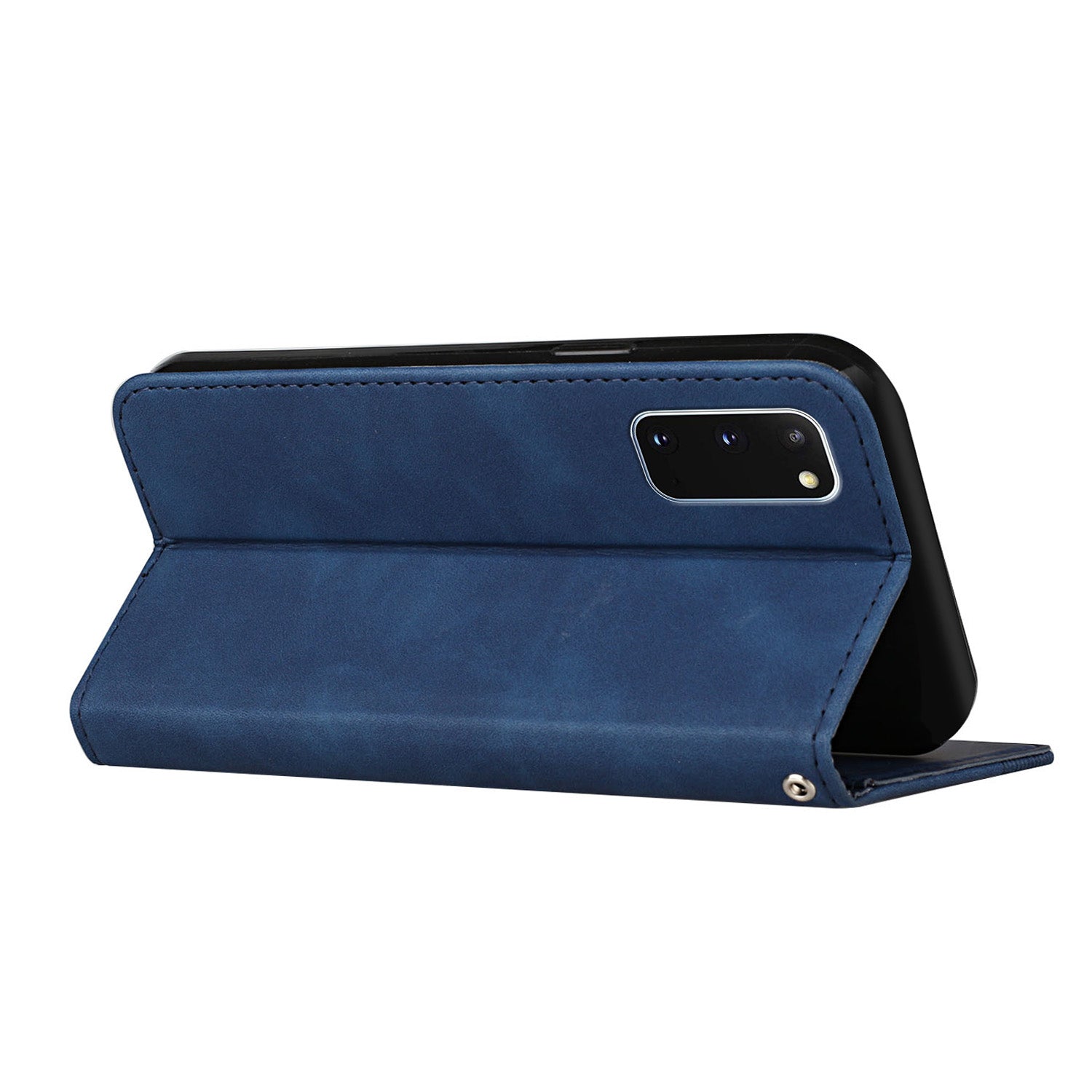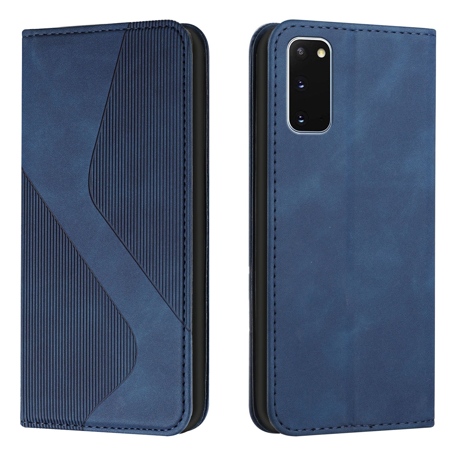 Anti-scratch Auto-absorbed Magnetic Closure S-shaped Texture Leather Flip Wallet Stand Case for Samsung Galaxy S20 4G/S20 5G - Blue