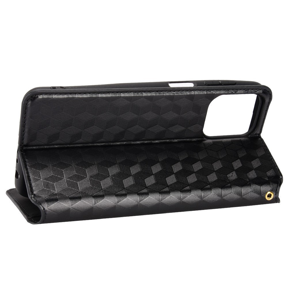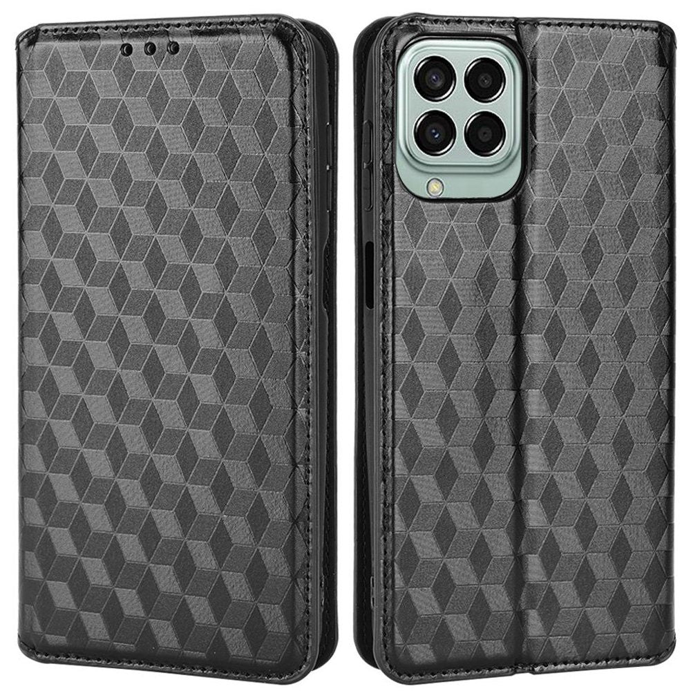 Anti-scratch Imprinted Rhombus Pattern Case for Samsung Galaxy M33 5G (Global Version), PU Leather Stand Magnetic Auto Closure Wallet Phone Cover - Black