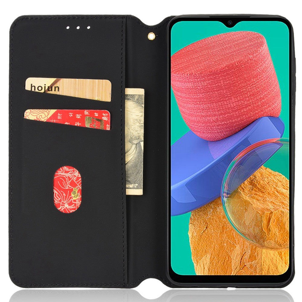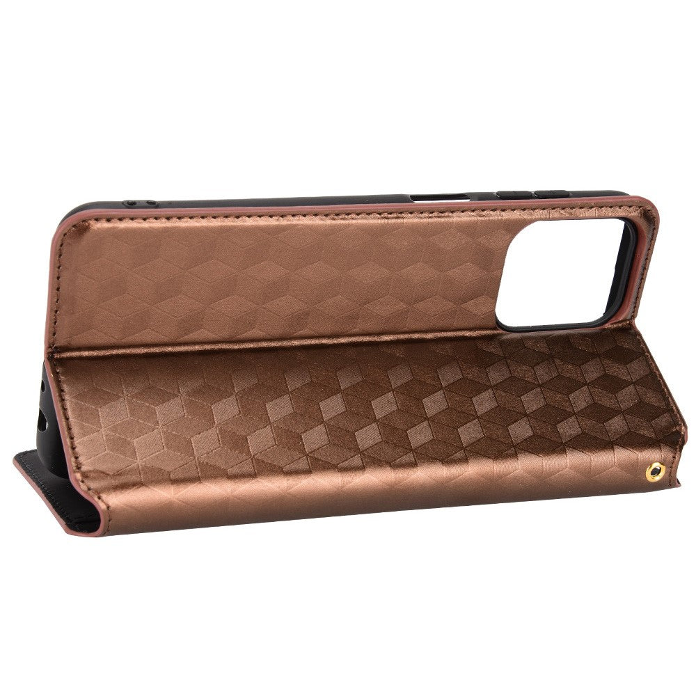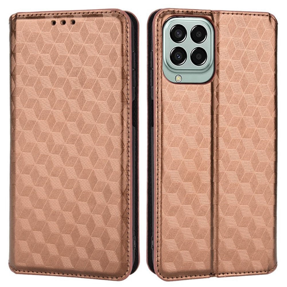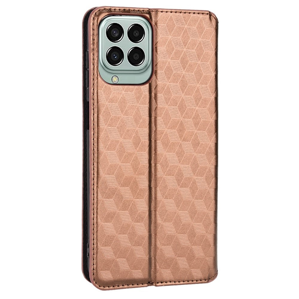 Anti-scratch Imprinted Rhombus Pattern Case for Samsung Galaxy M33 5G (Global Version), PU Leather Stand Magnetic Auto Closure Wallet Phone Cover - Brown