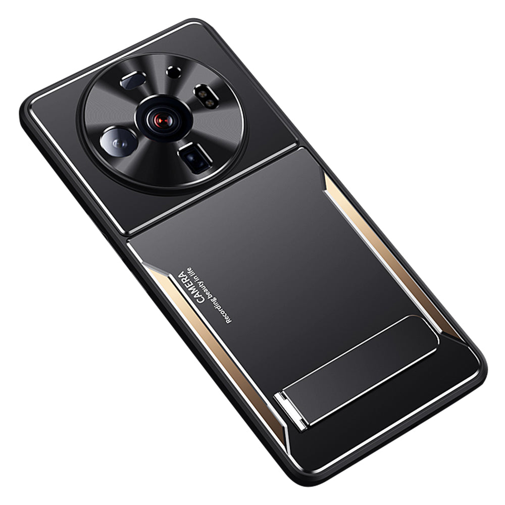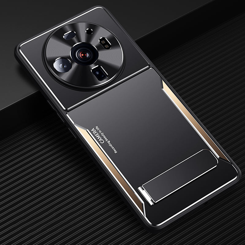 Anti-Scratch Phone Case For Xiaomi 12S Ultra 5G , Cell Phone Shell TPU+Aluminium Alloy Cover with Kickstand - Gold