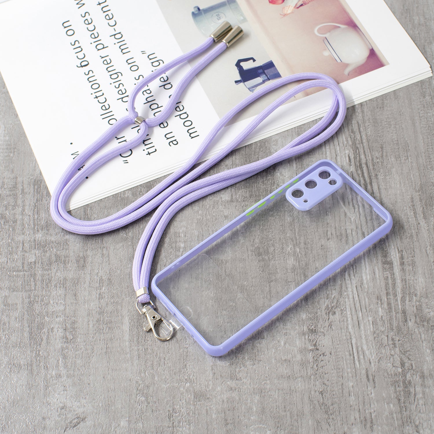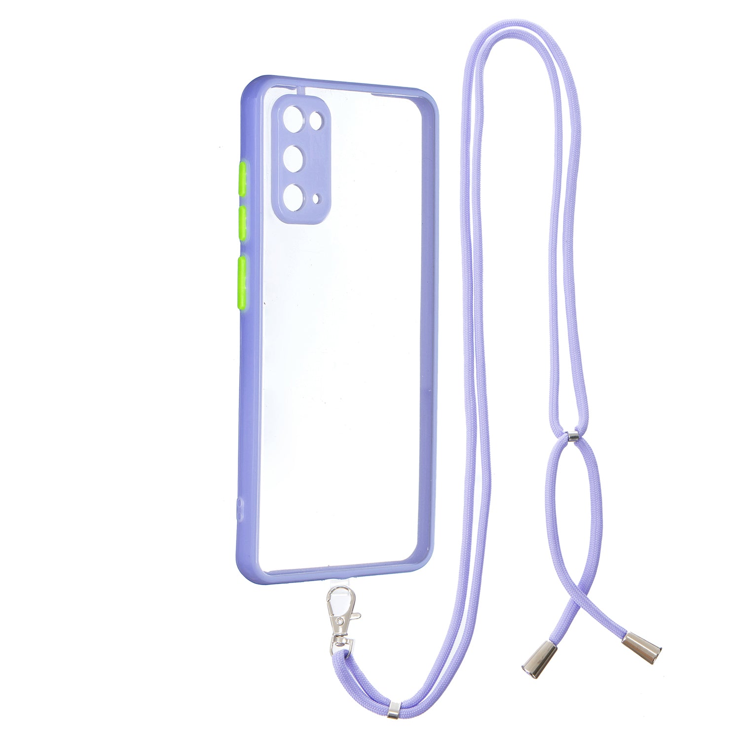 Anti-Scratch Shockproof Clear Acrylic + TPU Bumper Protective Case with Lanyard for Samsung Galaxy S20 4G/S20 5G - Purple