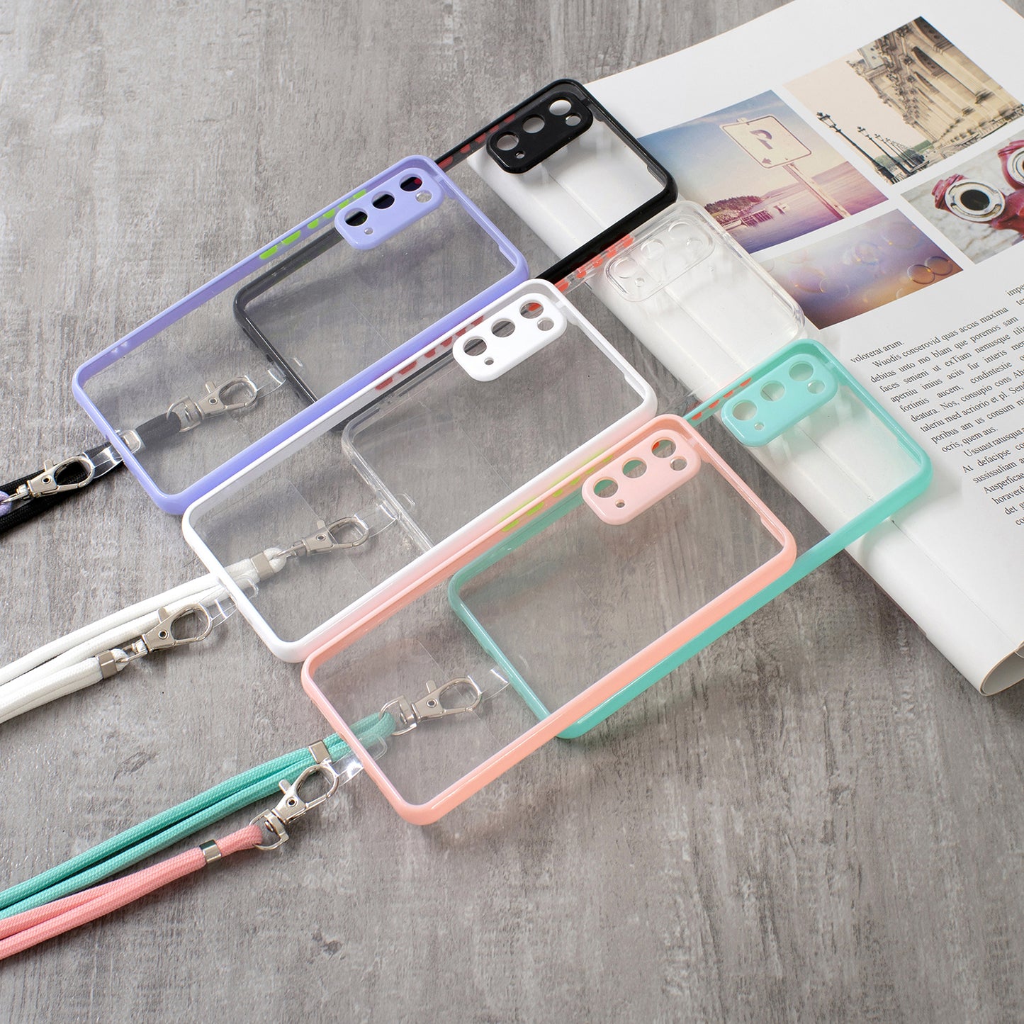Anti-Scratch Shockproof Clear Acrylic + TPU Bumper Protective Case with Lanyard for Samsung Galaxy S20 4G/S20 5G - Transparent