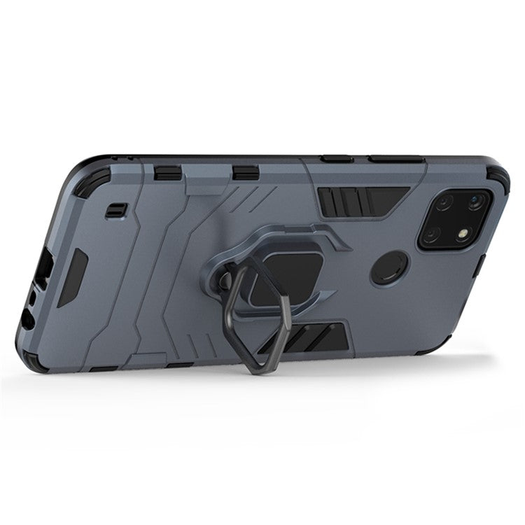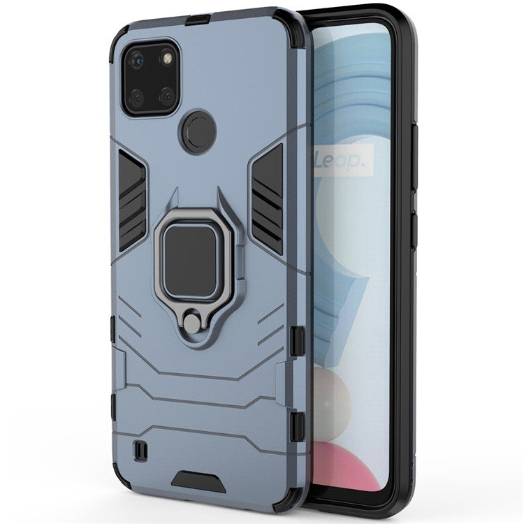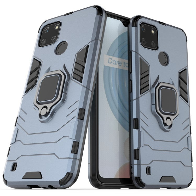 Anti-scratch Soft TPU + Hard PC Protective Case with Metal Ring Kickstand for Realme C21Y - Blue