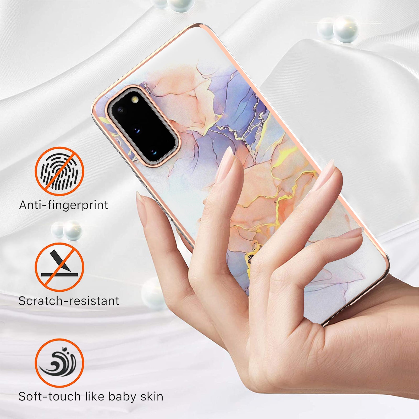 Anti-scratch Stylish Marble Design IMD IML Electroplating Soft TPU Phone Case Cover for Samsung Galaxy S20 4G/S20 5G - Milky Way Marble White