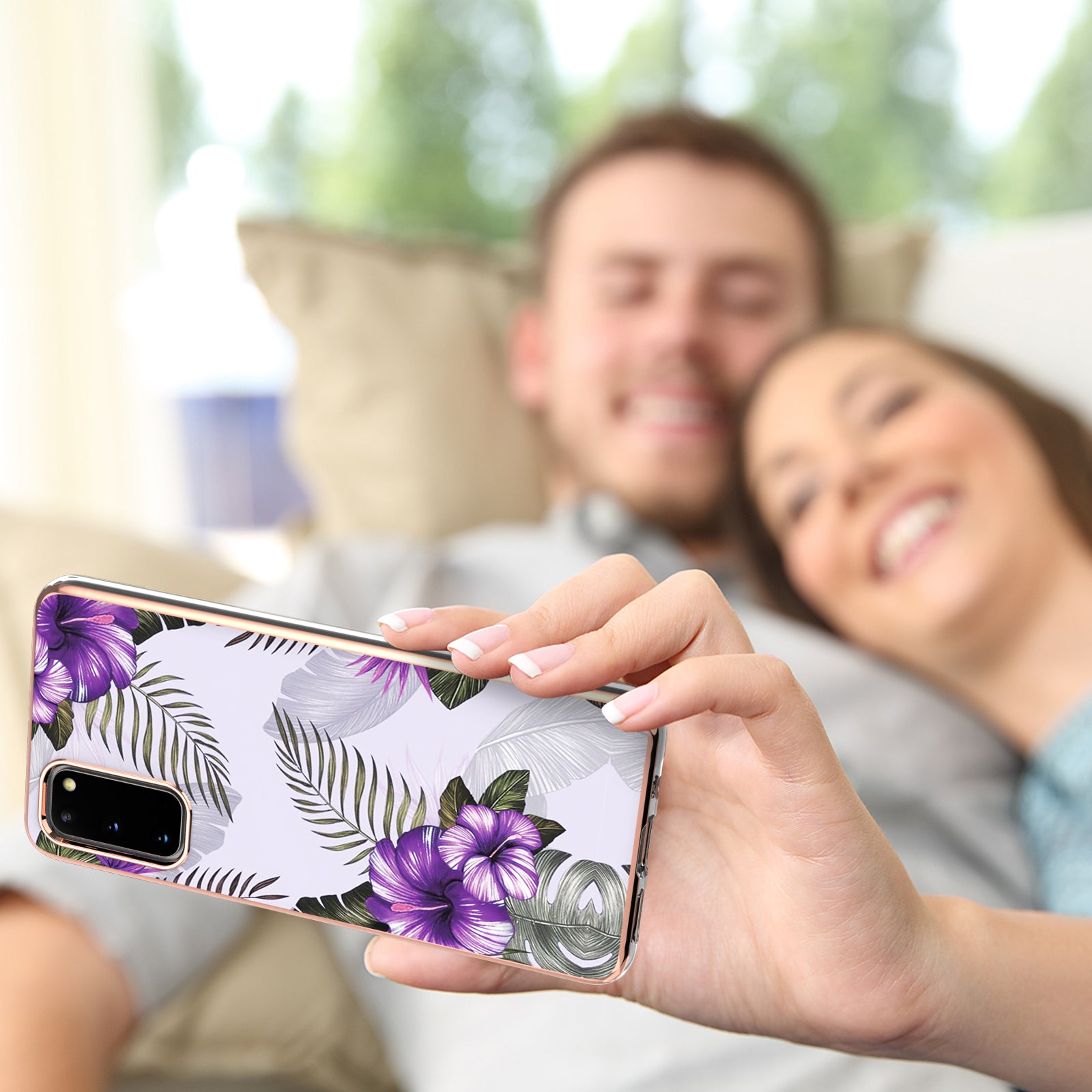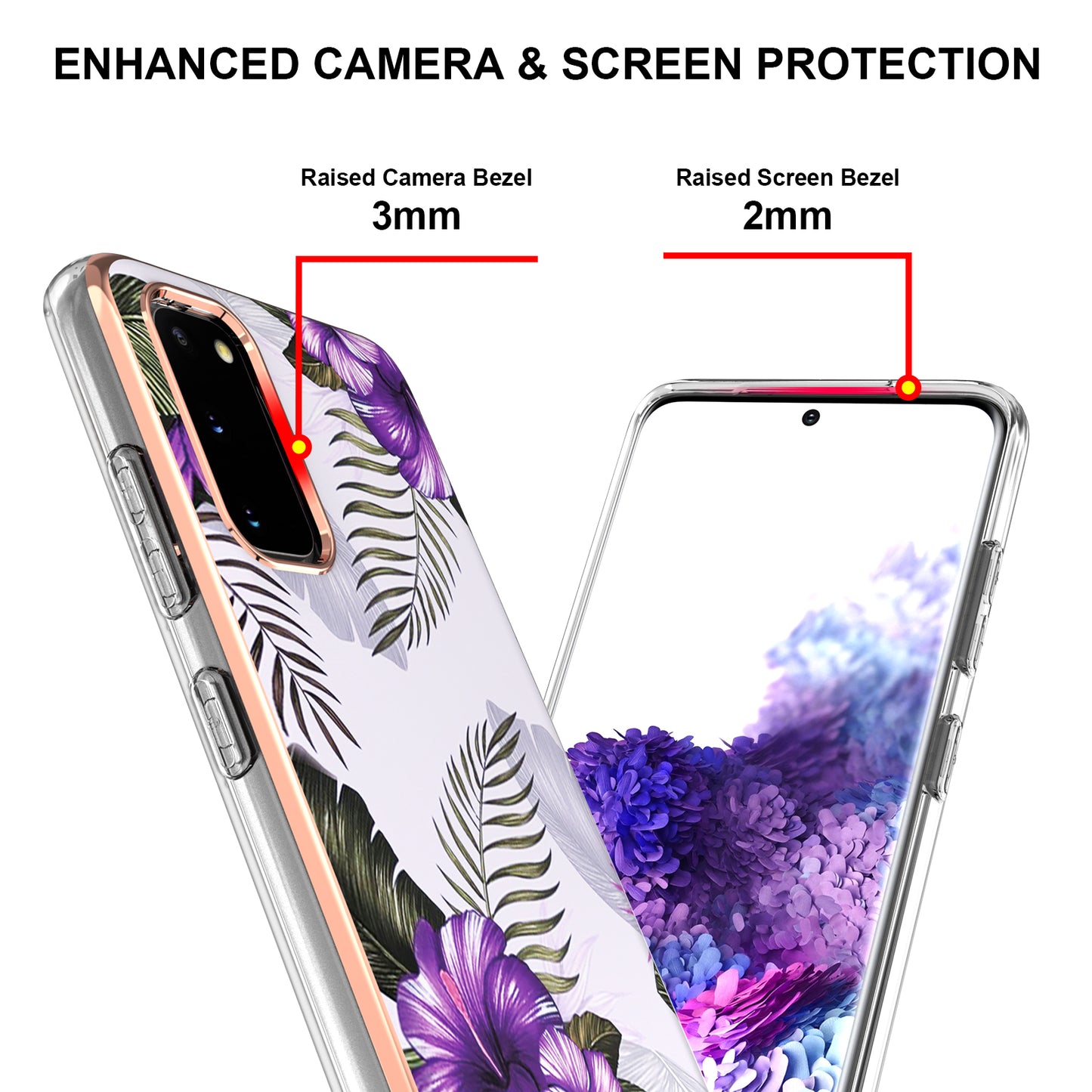 Anti-scratch Stylish Marble Design IMD IML Electroplating Soft TPU Phone Case Cover for Samsung Galaxy S20 4G/S20 5G - Purple Flowers