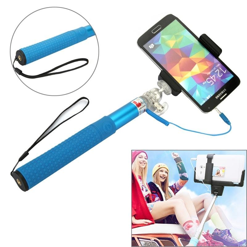 Anti-skid Aluminium Alloy 3.5mm Audio Cable Take Pole Self-timer Controller for iPhone 6 & 6S & 5 / Galaxy S3 / S4 / S5 / NOTE, Max Length: 85cm (Blue)
