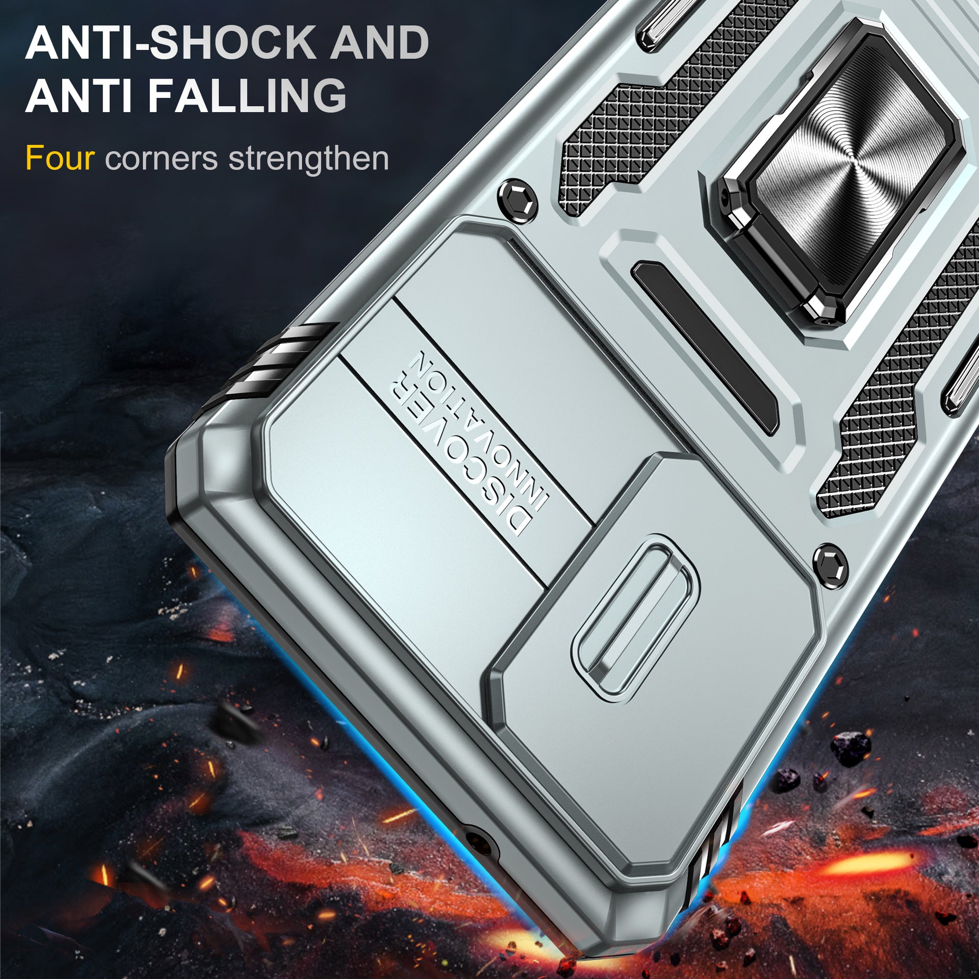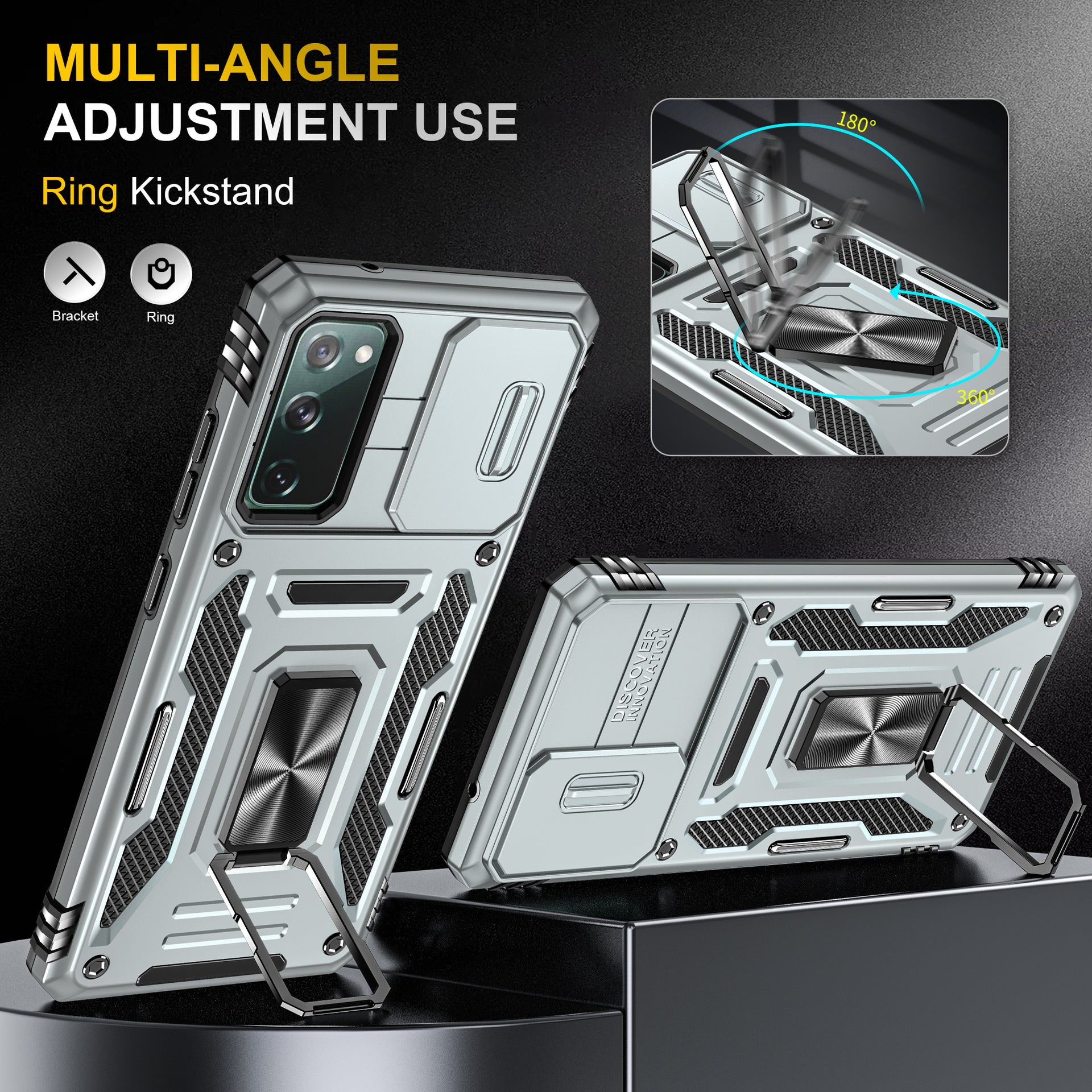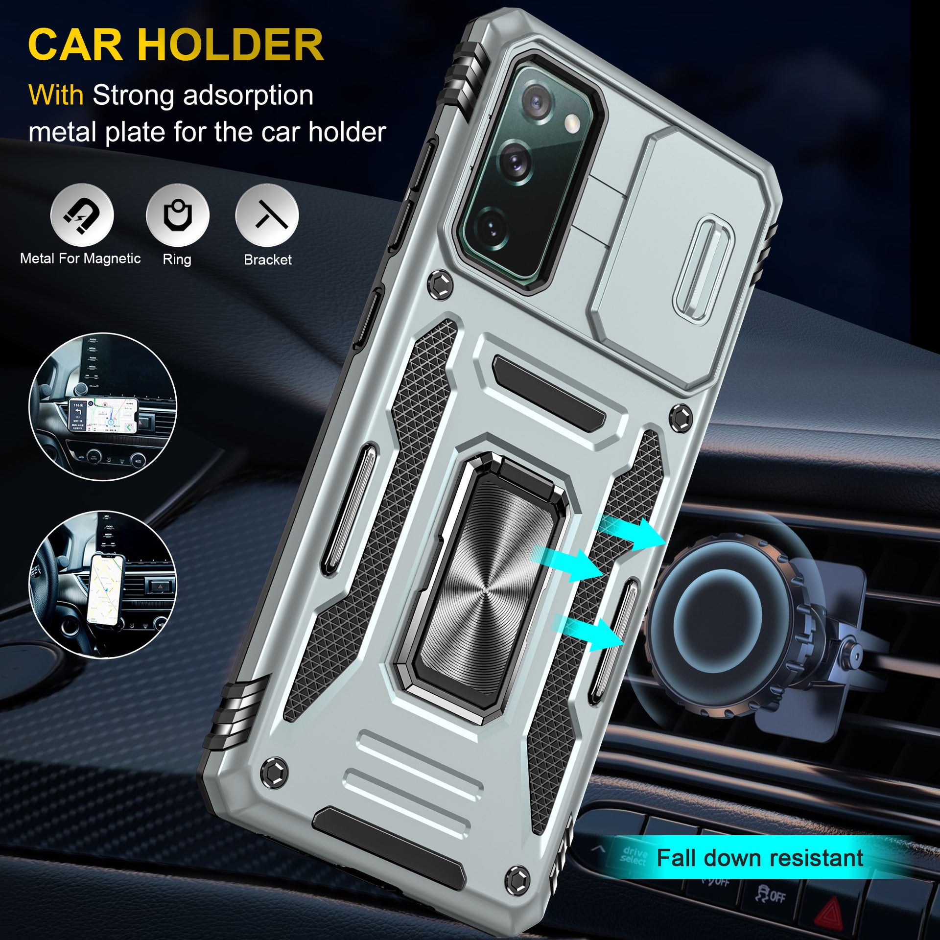Armor Series for Samsung Galaxy S20 FE 4G / 5G / S20 FE 2022 / S20 Lite Kickstand Design Shockproof Phone Case PC + TPU Protective Back Cover with Slide Camera Cover - Grey