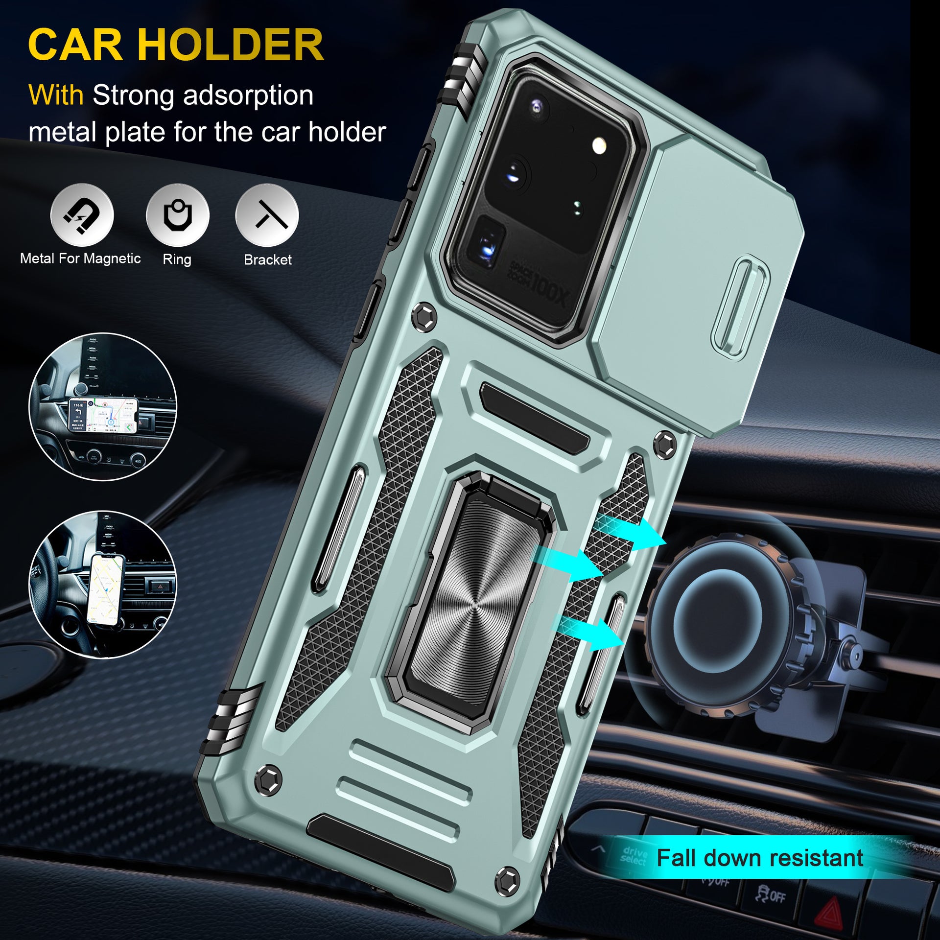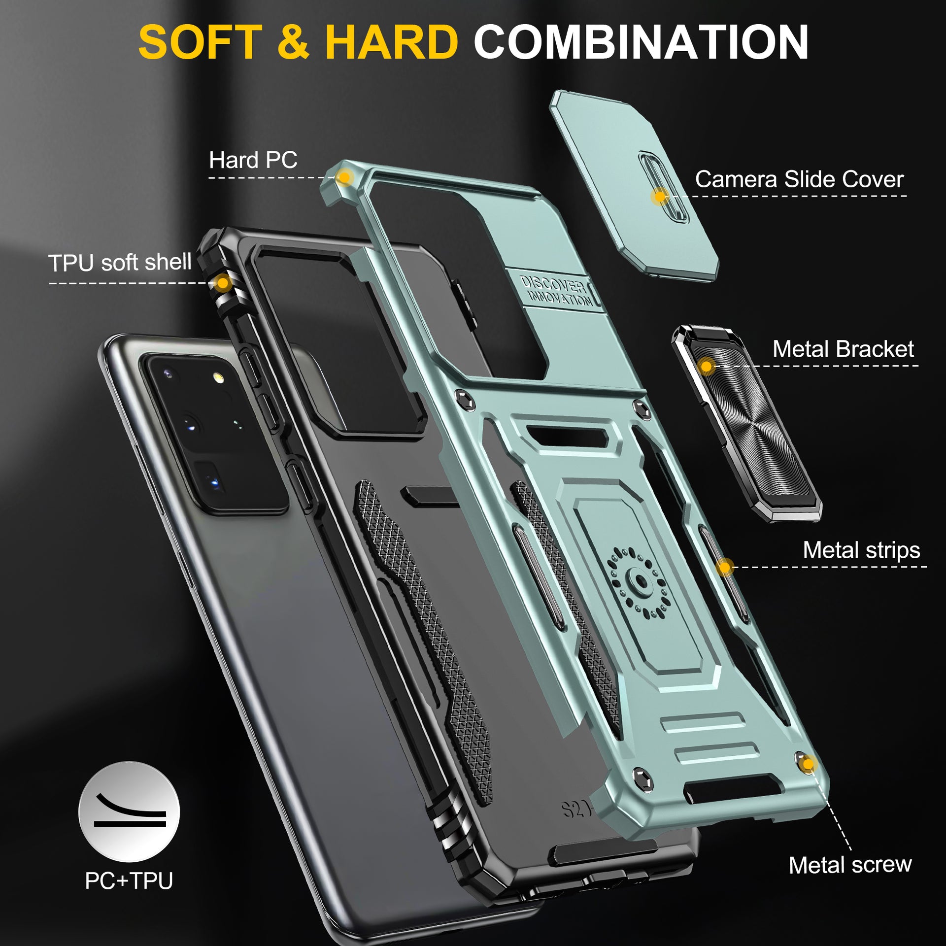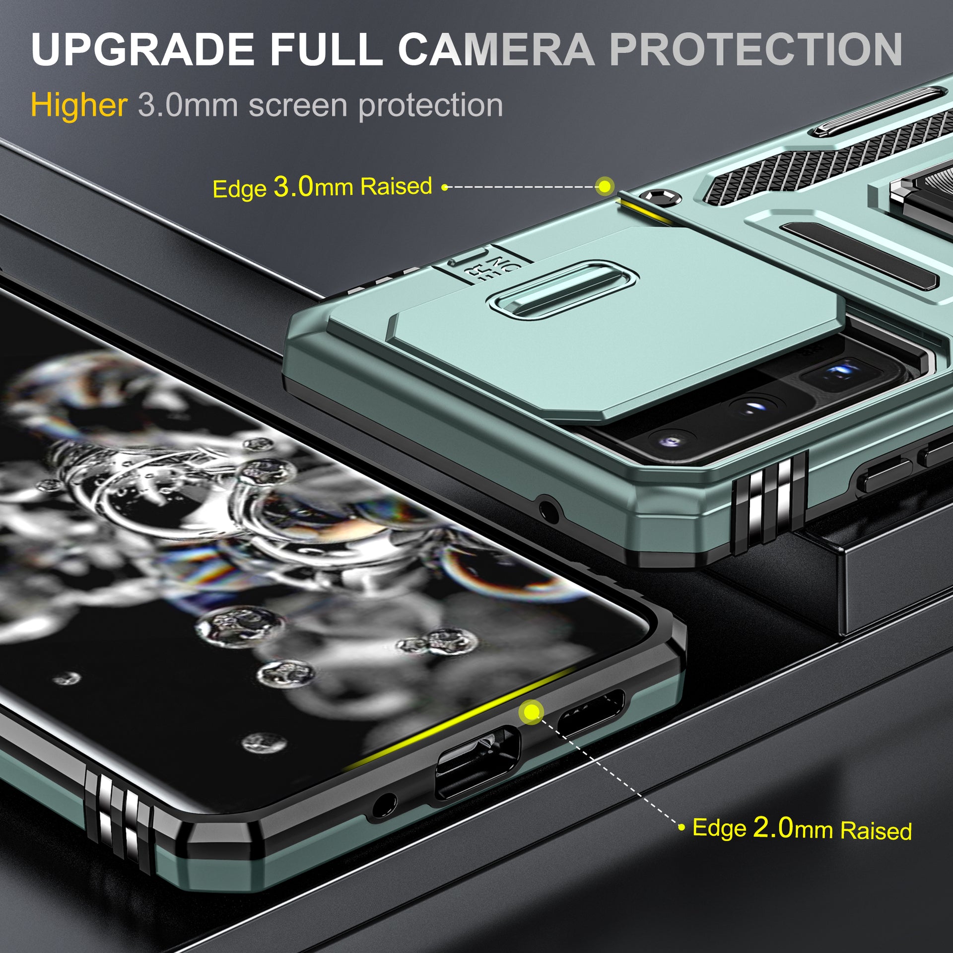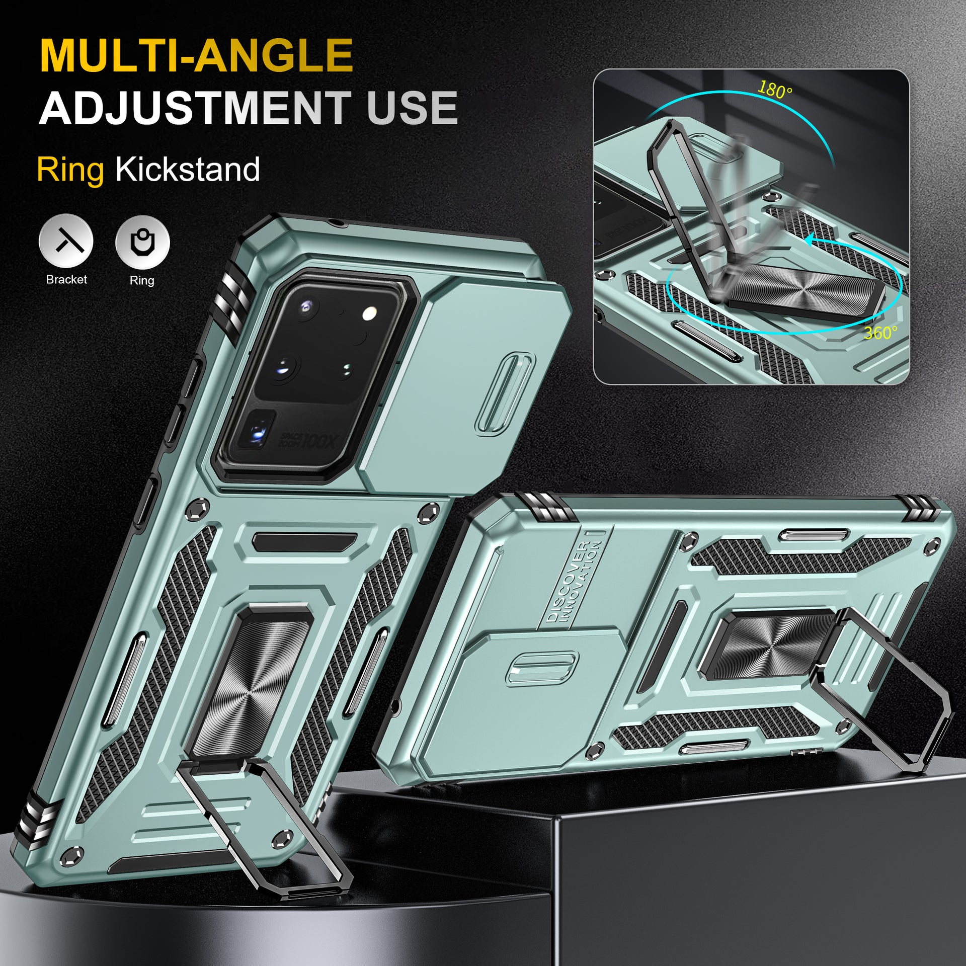 Armor Series for Samsung Galaxy S20 Ultra Kickstand PC + TPU Hybrid Cover Protective Phone Case with Slide Camera Protector - Green