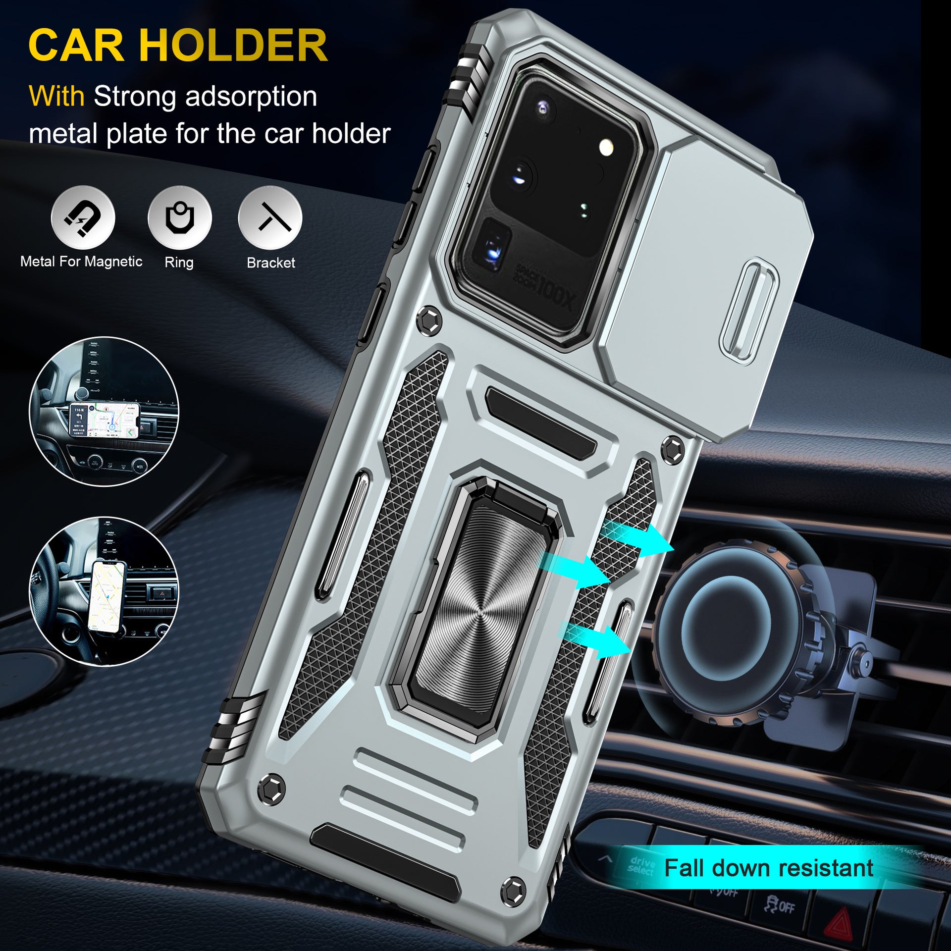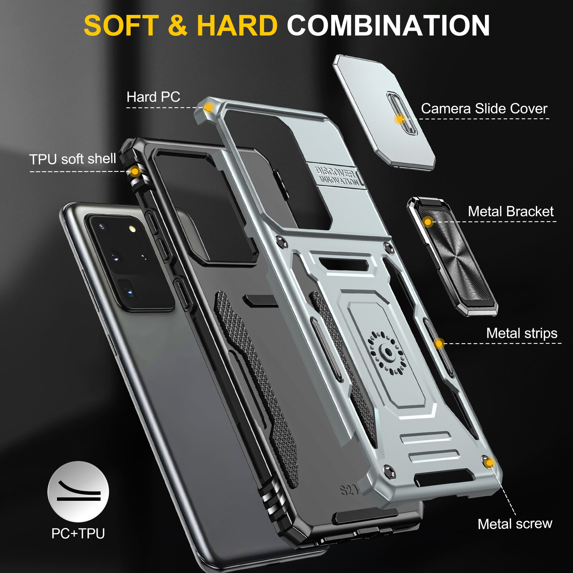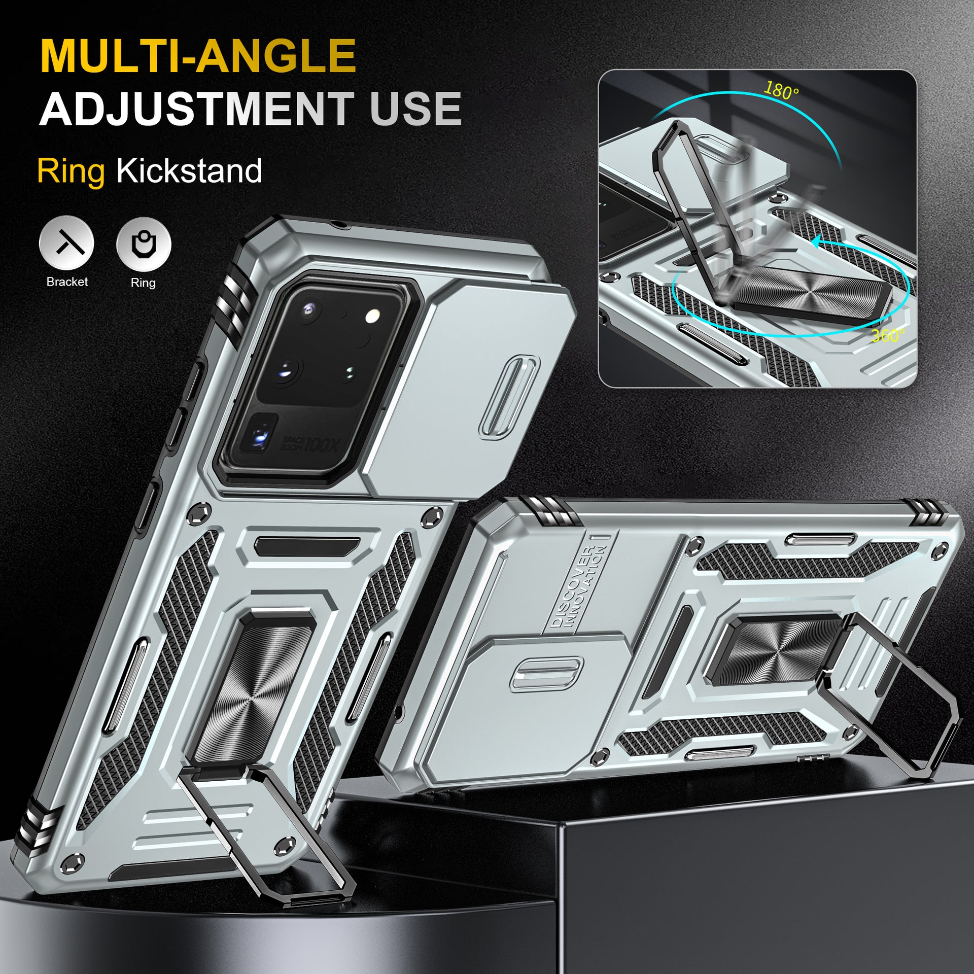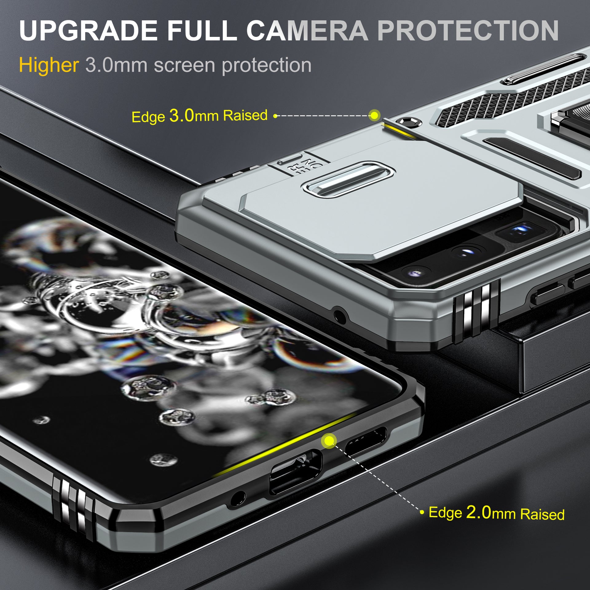 Armor Series for Samsung Galaxy S20 Ultra Kickstand PC + TPU Hybrid Cover Protective Phone Case with Slide Camera Protector - Grey