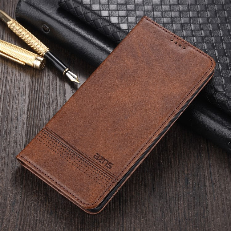 AZNS Auto-absorbed Magnetic Stand Wallet Case Leather Phone Shell for Realme 8/8 Pro - Coffee