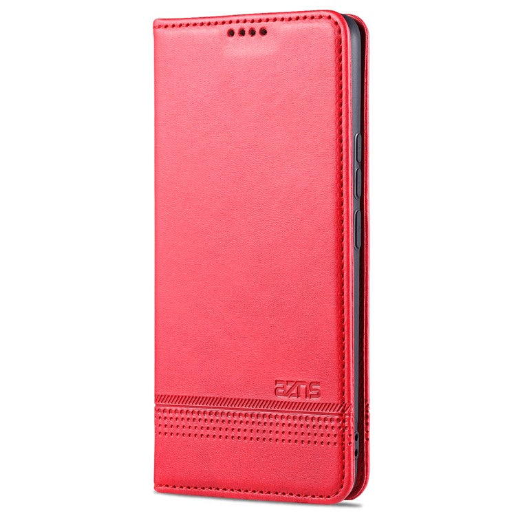 AZNS Auto-absorbed Magnetic Stand Wallet Case Leather Phone Shell for Realme 8/8 Pro - Red