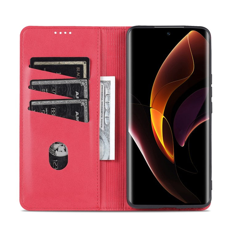 AZNS Fall Prevention PU Leather Wallet Flip Case Magnetic Absorption Folding Stand Protective Cover for Honor 60 - Red