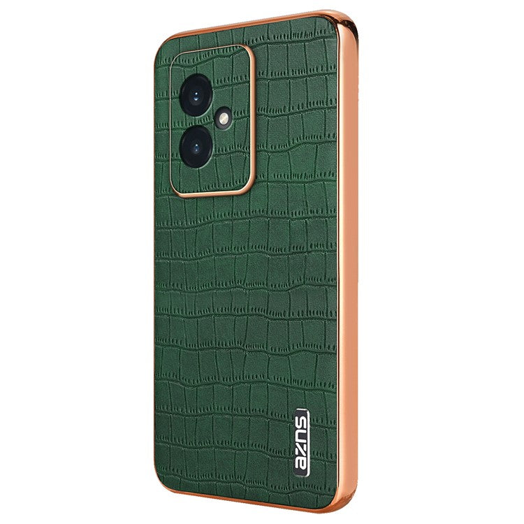 AZNS For Honor 100 5G Case Crocodile Texture Leather+TPU Cover Electroplating Frame - Green