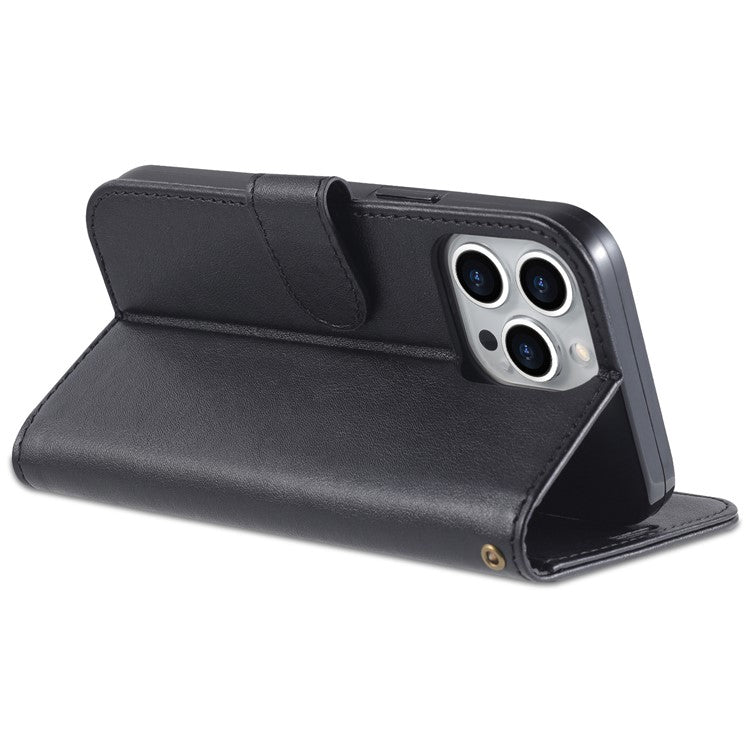AZNS For iPhone 16 Pro Stand Case Anti-Drop PU Leather Wallet Phone Cover - Black