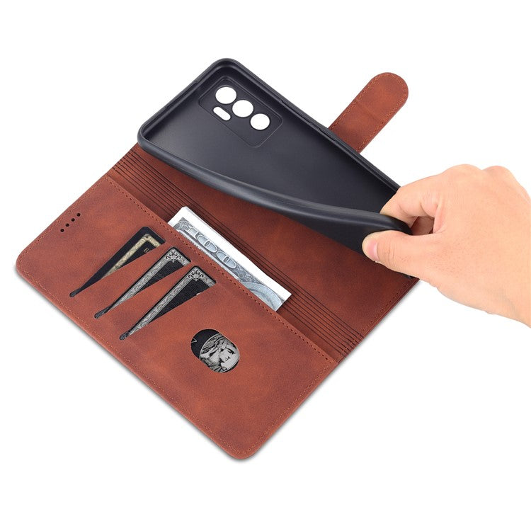 AZNS Full Body Protection PU Leather Wallet Stand Protective Phone Case Cover for vivo S10e/V23e 4G - Brown