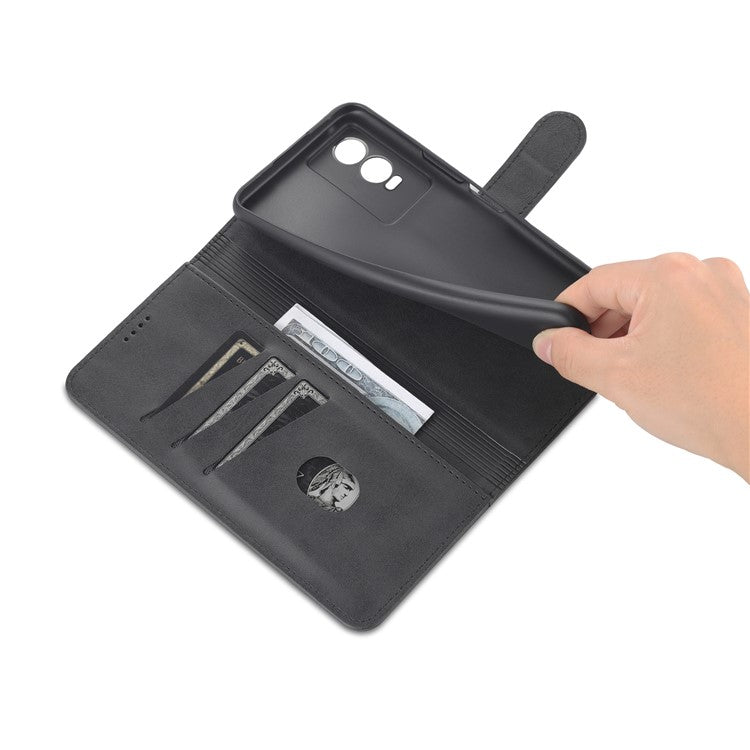 AZNS PU Leather Case for vivo Y76s / Y74s, Wallet Folding Stand Magnetic Scratch-proof Flip Cover - Black