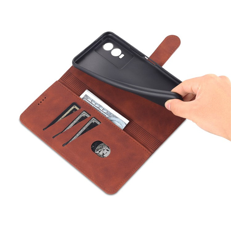 AZNS PU Leather Case for vivo Y76s / Y74s, Wallet Folding Stand Magnetic Scratch-proof Flip Cover - Brown