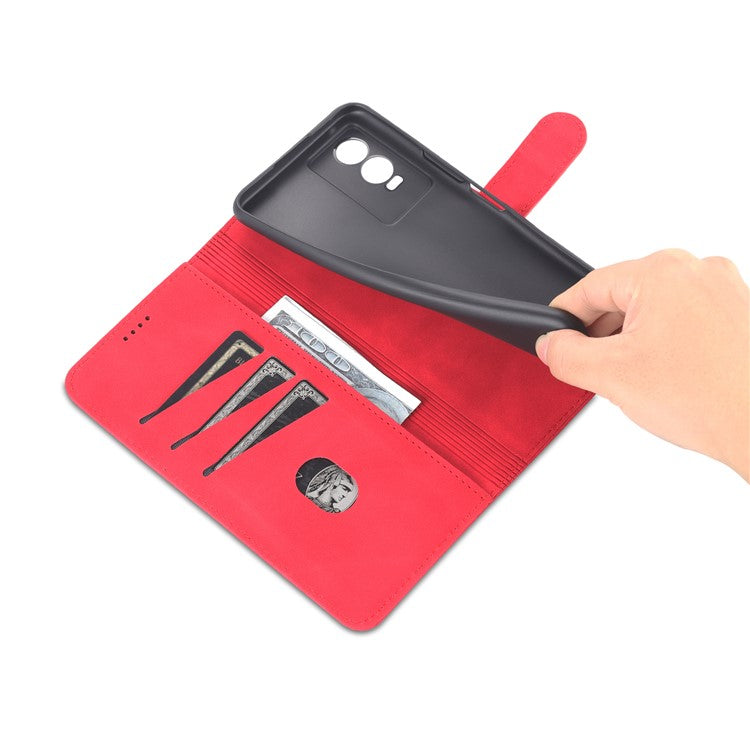 AZNS PU Leather Case for vivo Y76s / Y74s, Wallet Folding Stand Magnetic Scratch-proof Flip Cover - Red