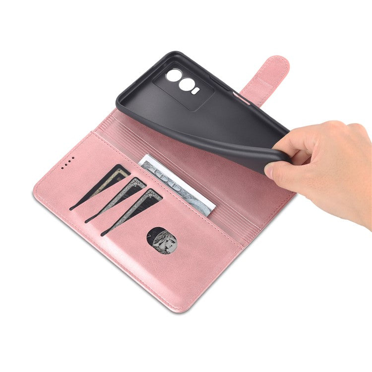 AZNS PU Leather Case for vivo Y76s / Y74s, Wallet Folding Stand Magnetic Scratch-proof Flip Cover - Rose Gold