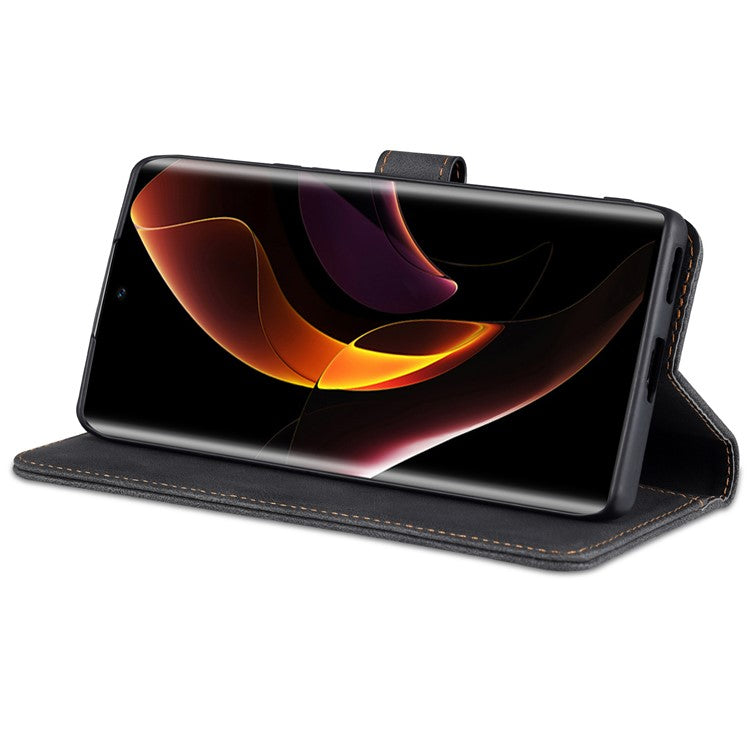 AZNS Wallet Phone Case for Honor 60 Pro, Supporting Stand Magnetic Mobile PU Leather Phone Flip Cover - Black