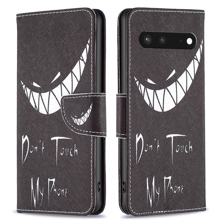 BF Pattern Printing Leather Series-1 for Google Pixel 7 PU Leather Wallet Phone Case Magnetic Clasp Imprinted Pattern Stand Protective Cover - Don't Touch My Phone
