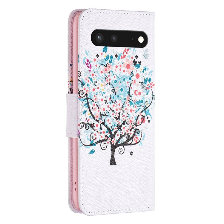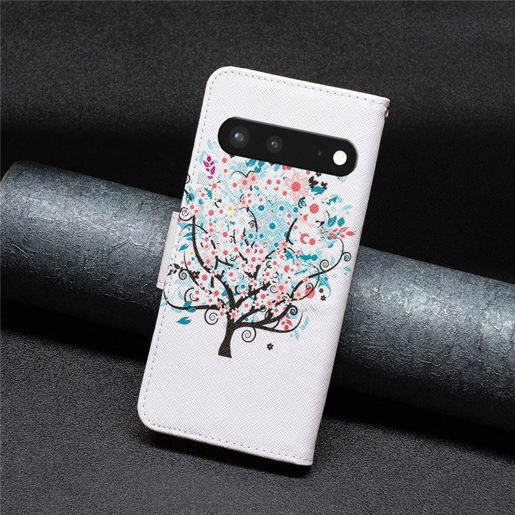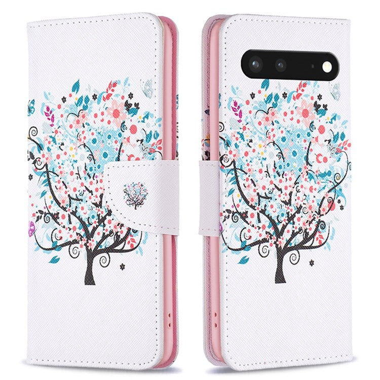 BF Pattern Printing Leather Series-1 for Google Pixel 7 PU Leather Wallet Phone Case Magnetic Clasp Imprinted Pattern Stand Protective Cover - Flower Tree