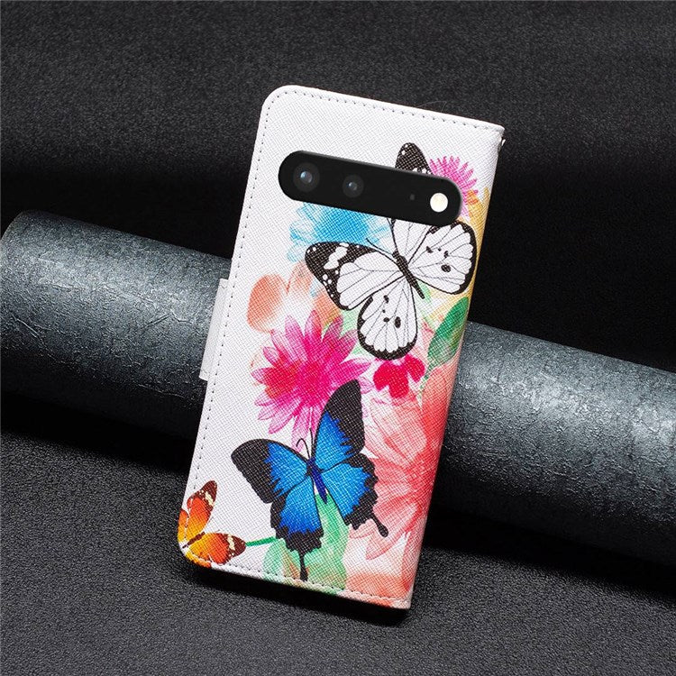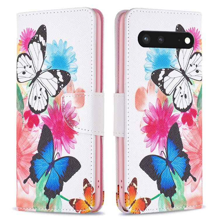 BF Pattern Printing Leather Series-1 for Google Pixel 7 PU Leather Wallet Phone Case Magnetic Clasp Imprinted Pattern Stand Protective Cover - Two Butterflies