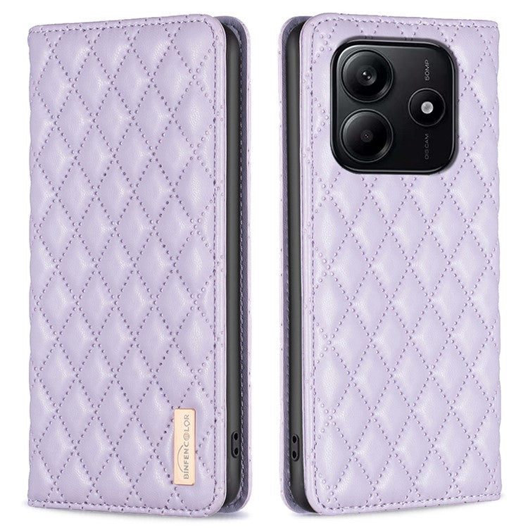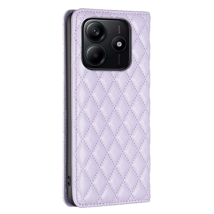 BINFEN COLOR BF Style-16 For Xiaomi Redmi Note 14 5G Case Card Slots Rhombus Leather Cover - Purple