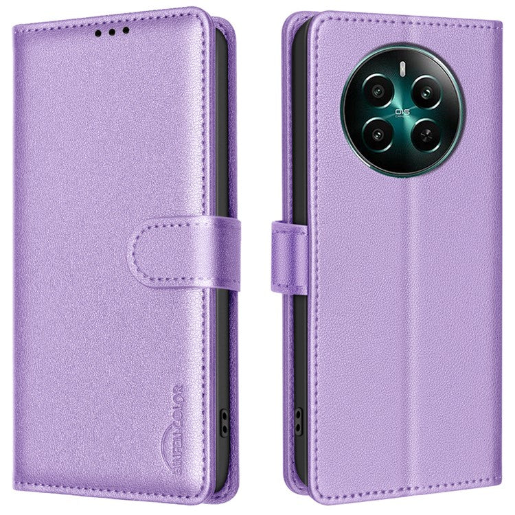 BINFEN COLOR BF32 For Realme 12 4G / 12+ 5G Cell Phone Case Litchi Texture RFID Blocking Leather Phone Cover - Purple