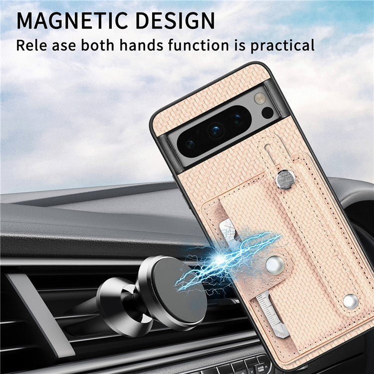 C1-01 For Google Pixel 8 Pro Case Card Holder Leather Back Cover Wristband Card Knife Tool - Khaki