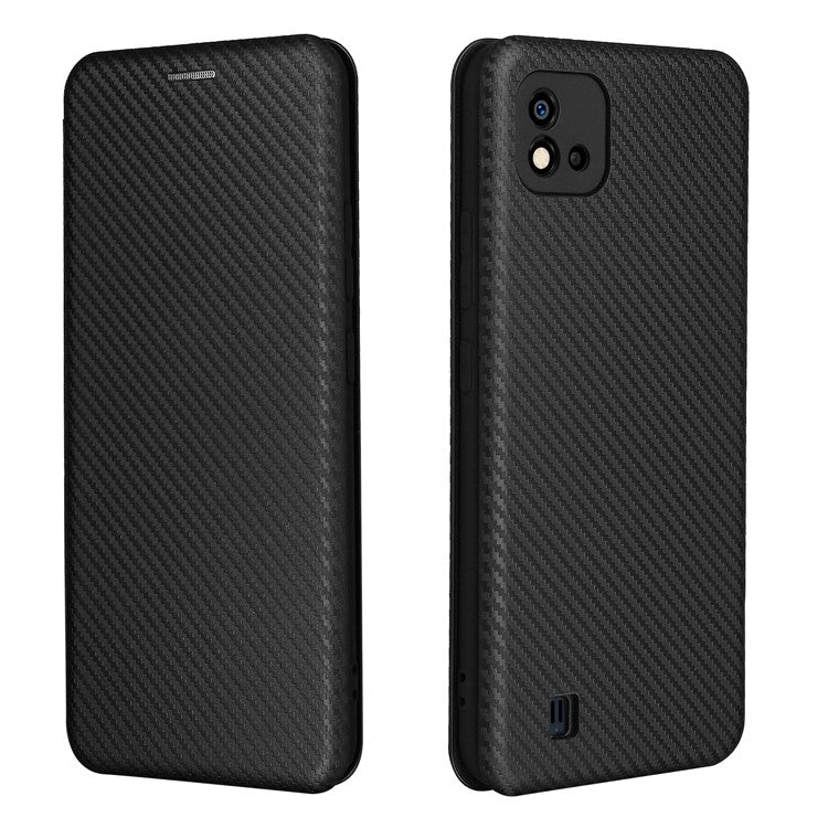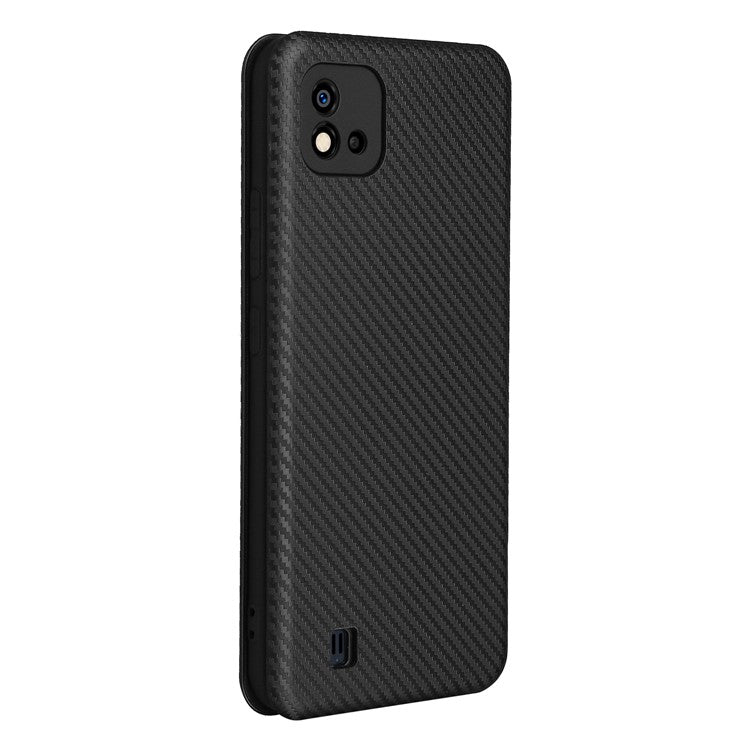 Carbon Fiber Texture Card Slot Auto-absorbed Leather Phone Shell Cover for Realme C11 2021 / C20 - Black
