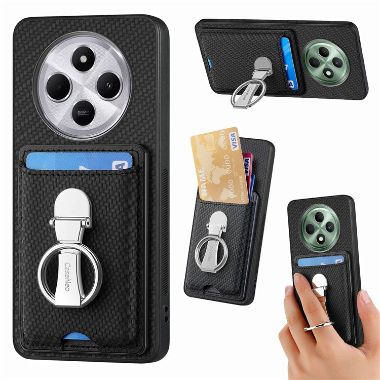 CASENEO C1-9 Phone Case For Xiaomi Redmi 14C 4G / 14R 5G / Poco C75 4G Carbon Fiber Texture Leather Back Cover with Card Slots Kickstand - Black