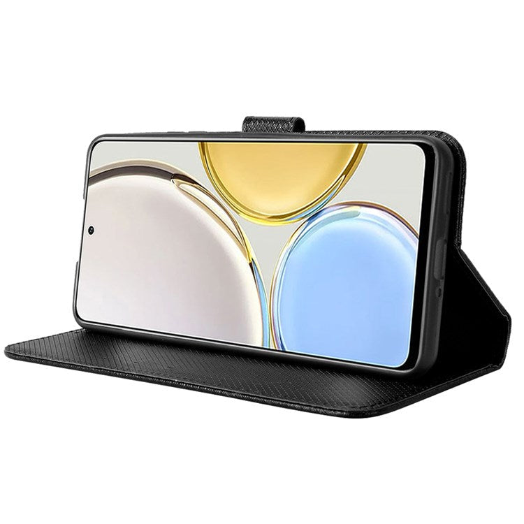 Cell Phone Case for Honor X9 4G/5G/Magic4 Lite 4G/5G/X30 5G Diamond Texture PU Leather+TPU Dual-layer Protection Wallet Phone Cover Case with Strap - Black