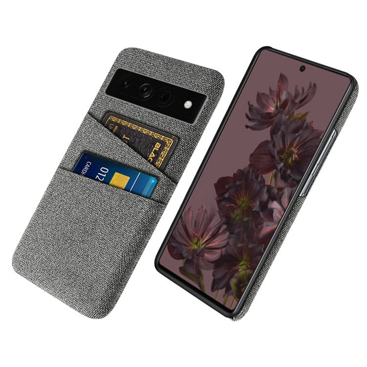 Cloth Texture PC Case for Google Pixel 7 Pro 5G Dual Card Slots Mobile Phone Protective Cover - Grey