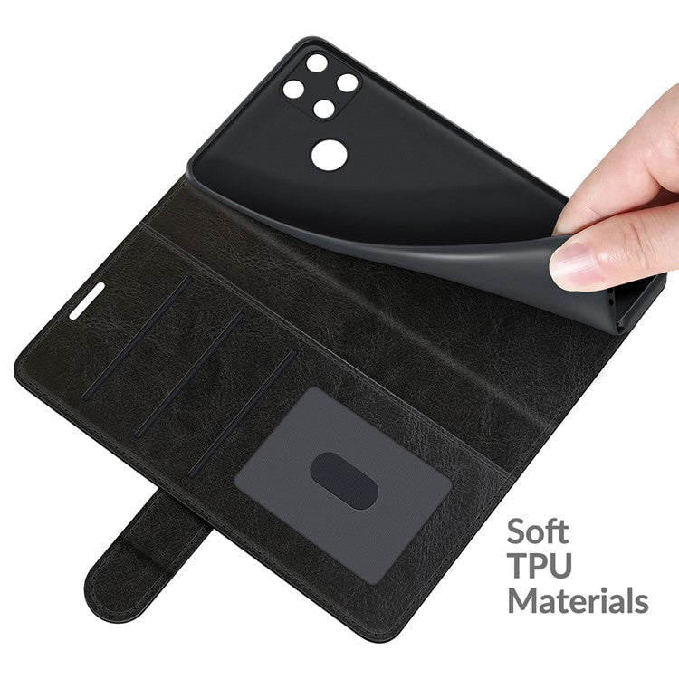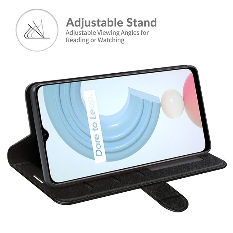 Crazy Horse Texture Folio Flip Leather Wallet Protective Case for Realme C21Y - Black