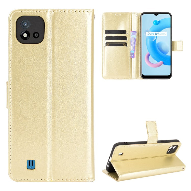 Crazy Horse Texture PU Leather Wallet Stand Phone Case Cover for Realme C11 2021/C20/C20A - Gold