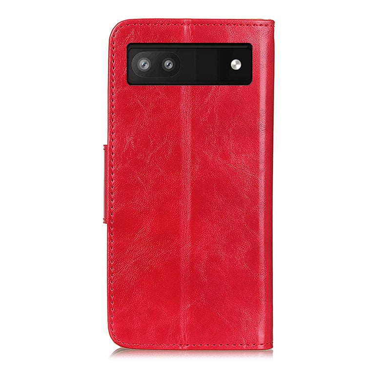 Crazy Horse Texture Split Leather + TPU Phone Cover Wallet Stand Case for Google Pixel 6a - Red