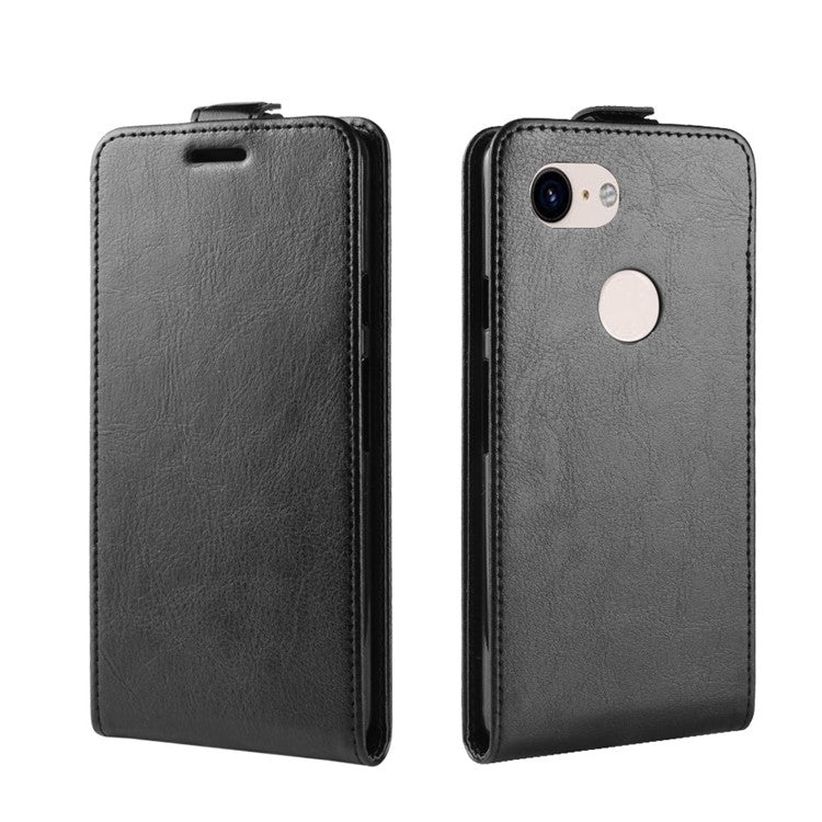 Crazy Horse [Vertical Flip] Leather Case Accessory for Google Pixel 3a - Black