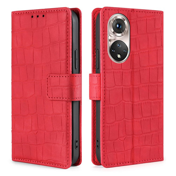 Crocodile Texture Magnetic Closure PU Leather Wallet Stand Flip Well-protected Case Shell for Honor 50 Pro - Red