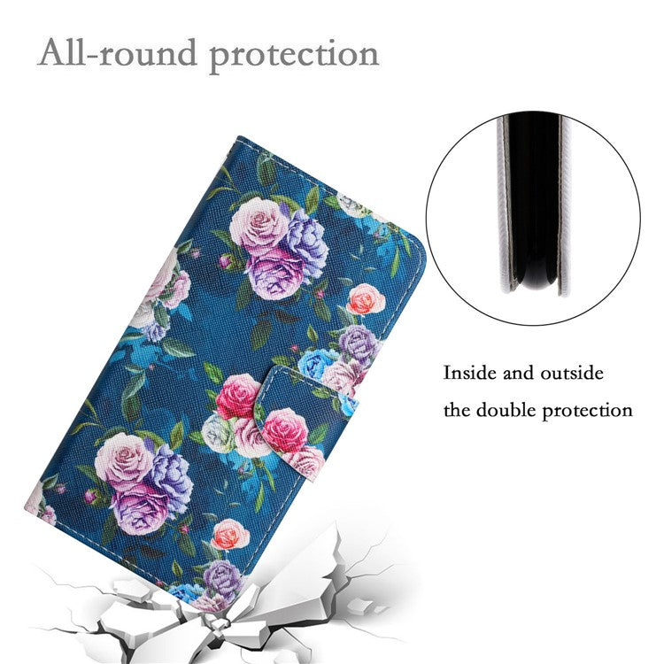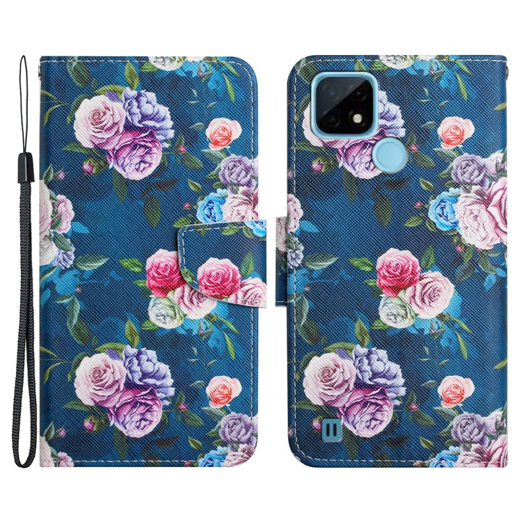 Cross Texture Pattern Printing Phone Case Stand Wallet Shockproof Leather Cover with Wrist Strap for Realme C21 - Fluorescent Rose
