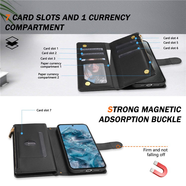 CSJ-P2 For Google Pixel 8 Pro Case Rhombus Stitching Design Leather Wallet Phone Cover with Long / Short Strap - Black