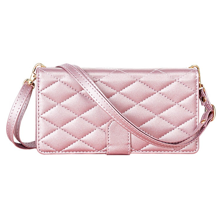 CSJ-P2 For Google Pixel 8 Pro Case Rhombus Stitching Design Leather Wallet Phone Cover with Long / Short Strap - Rose Gold
