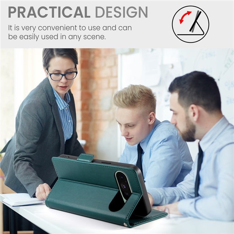 DF-010 For Google Pixel 9 / 9 Pro Case Side Magnetic Clasps Leather Stand Phone Cover - Blackish Green