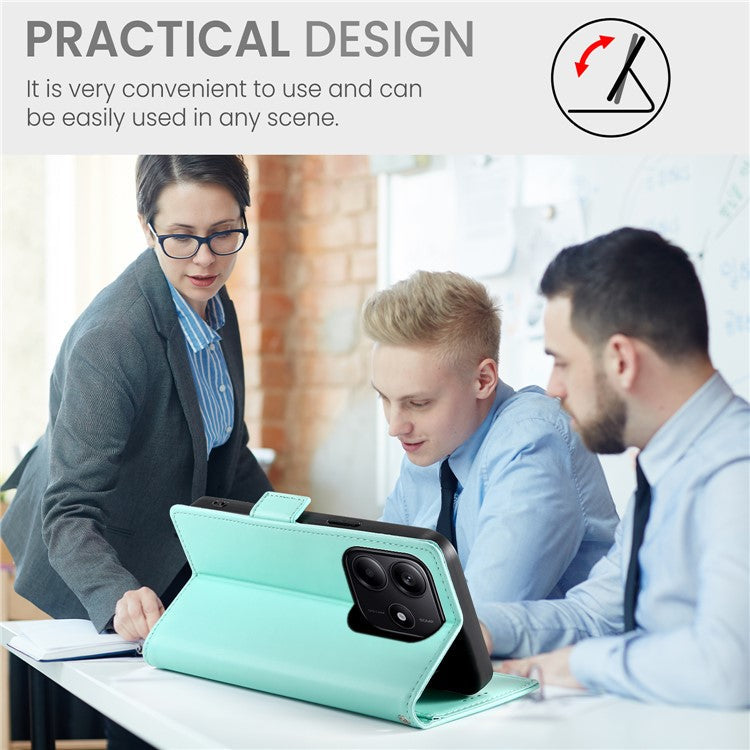 DF-010 For Xiaomi Redmi Note 14 5G / 14 4G Stand Case PU Leather Wallet Phone Cover - Mint Green